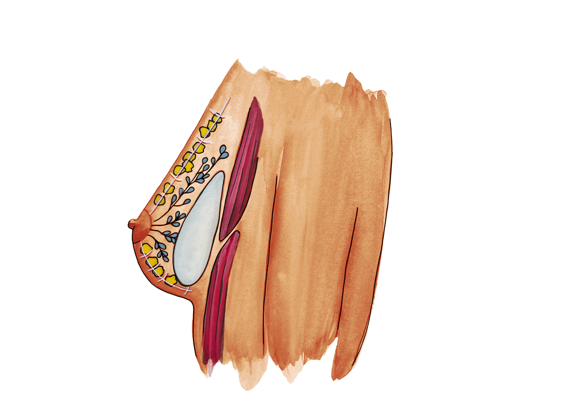 | Zugang / Schnittführung | Unterbrustfalte | Achselhöhle |